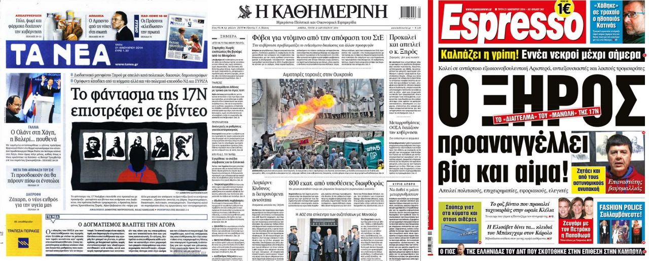 από τον ΣΥΡΙΖΑ έδειξε για τη 17Ν» (Τα Νέα, 28/5/2012) ή το πιο