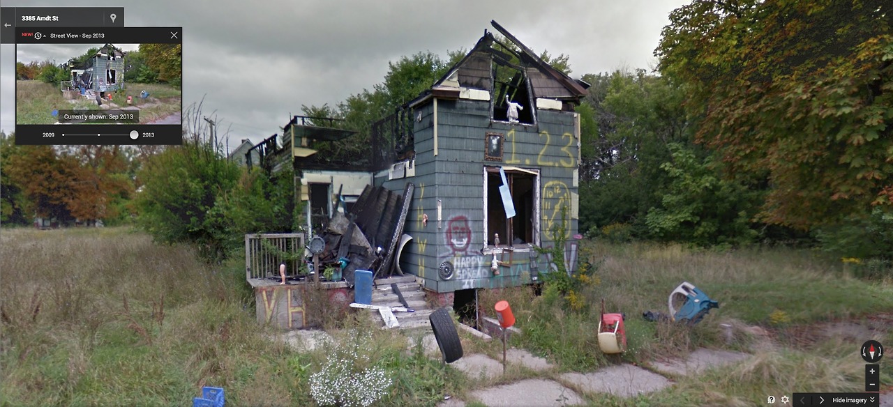 μπορεί κανείς να δει πώς μέσα σε λίγα χρόνια, κάποιες κανονικές γειτονιές με σπίτια, ανθρώπους και ζωή μεταμορφώθηκαν σε νεκροπόλεις.